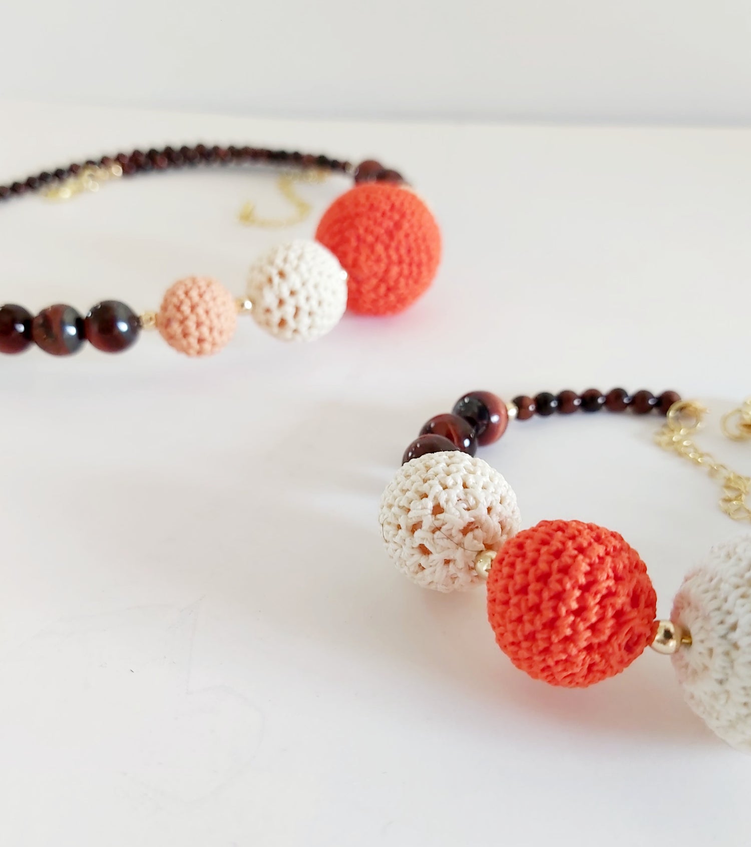 Autumn Necklace "Leaf Fall" – Handmade Crochet Jewelry Set with Bracelet (Customizable)