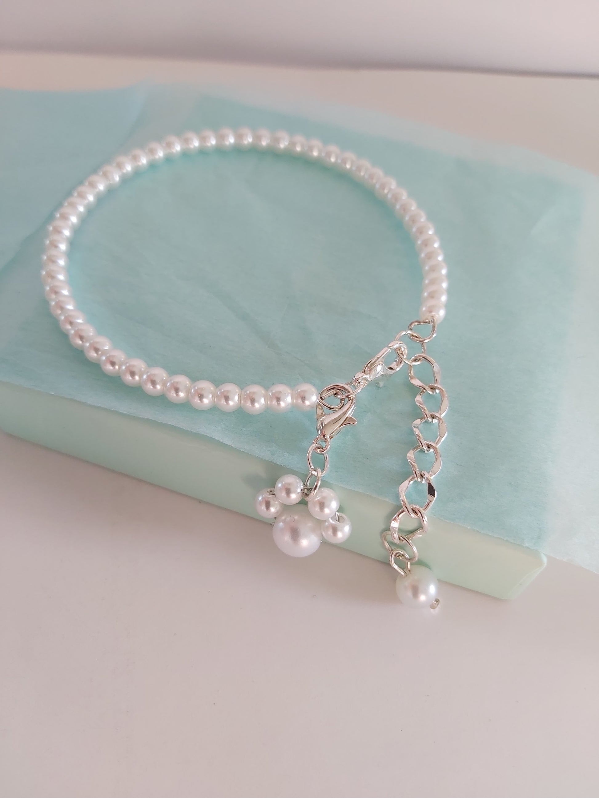 Celebrate the bond with your furry friend with this handmade bracelet, featuring white glass beads with a pearly finish, elegant silver-tone hardware, and a removable paw charm made of tiny white beads. Every detail is crafted with care, making this piece not just jewelry, but a keepsake of your love for your pet.